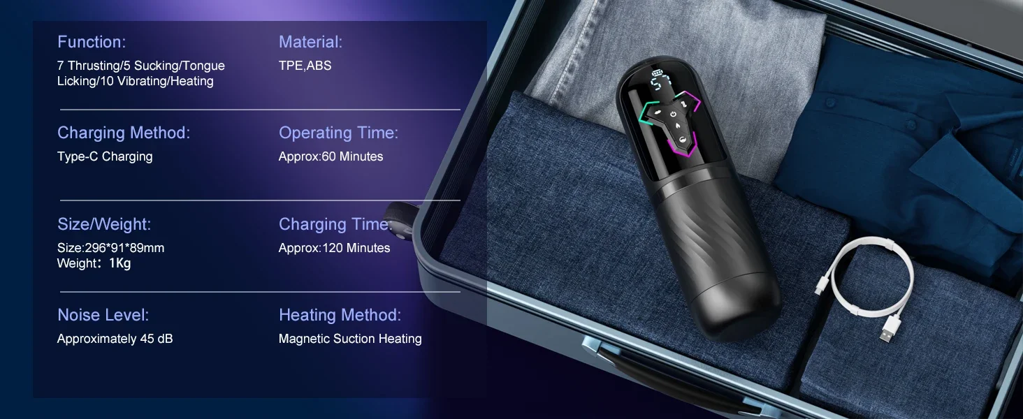 【1*10*7*5 COMBINATION MODE=SEVERAL TIMES MORE ENJOYABLE EXPERIENCE & HEATING FUNCTION】The perfect combination of 7 telescopic modes and 10 vibration & licking modes, as well as 5 suction modes, allows you to try out different sexual experiences in various combinations. And thanks to the innovative heating function, you can warm the inside of the male masturbator to any desired temperature, allowing you to experience the ultimate pleasure of sex with different women using just one product.