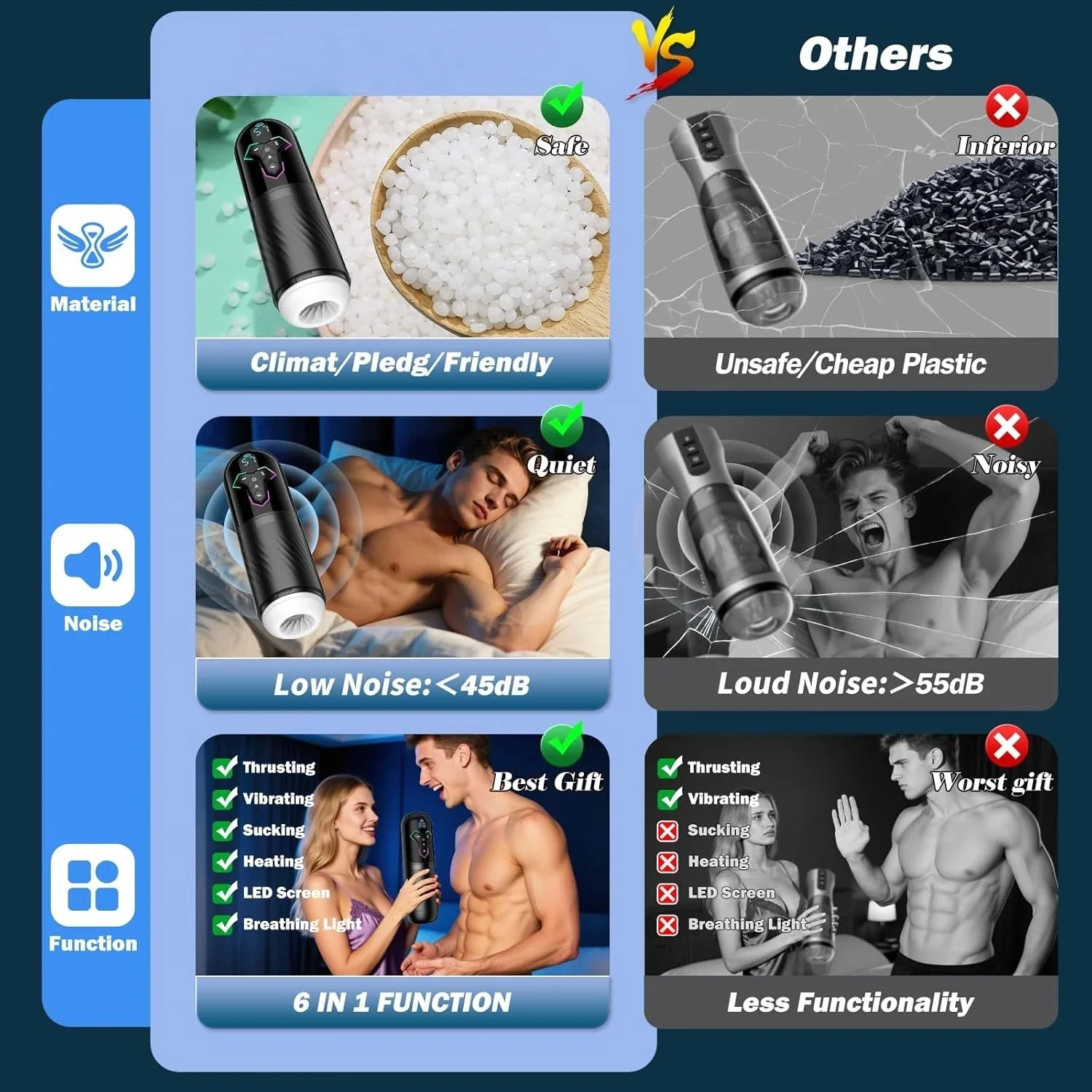 【UPGRADED SOUNDPROOFING SYSTEM - FOR MULTIPLE SCENARIOS】 This male stroker has been upgraded with soundproofing materials to bring its sound decibels to an unprecedented level. Paired with a new generation brushless motor, this male adult toy delivers powerful and virtually silent operation - less than 45dB. Whether you live with roommates, family, in a poorly soundproofed apartment, in the car, in a hotel, or even outdoors; you can enjoy secluded pleasure without worry.